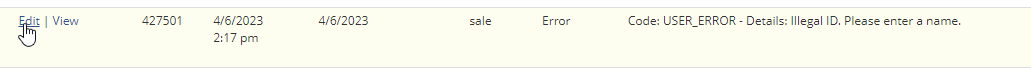 Code: THE_TRANSACTION_DATE_YOU_SPECIFIED_IS_NOT_WITHIN_AN_OPEN_ACCOUNTING | The Sale Date we are trying to set on the Transaction Date in NetSuite, there is no accounting period open to create the Transaction for that Date period | Get the accounting period open and put the Payload into Pending again or Sync from Transaction Dashboard |
