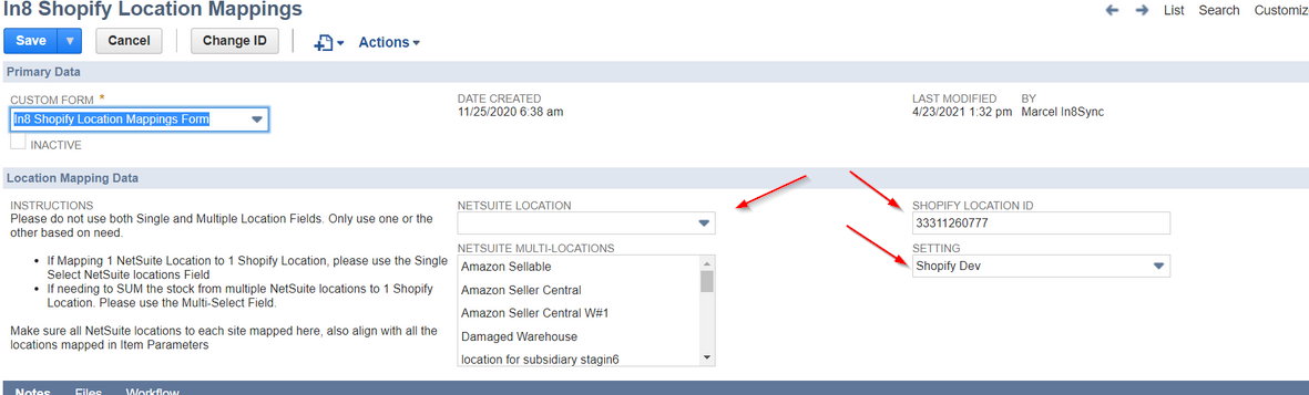 These locations are used for Shopify location ids on Stock Sync and Item Fulfillment Sync