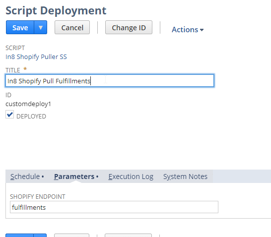 Fulfillments: Shopify To NetSuite, when enabled, does have a Separate Deployment Required with “Shopify Endpoint” = “fulfillments” (without quotes):